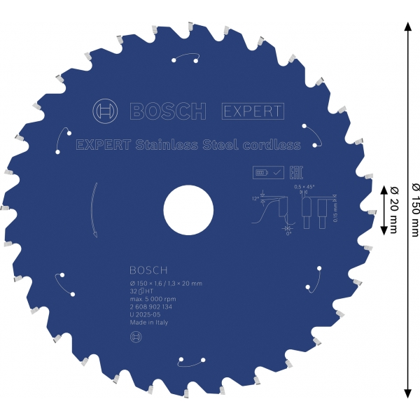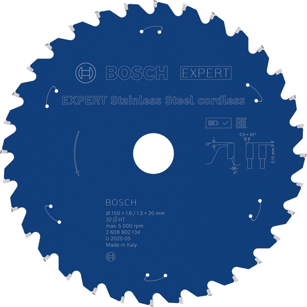 Panza de ferastrau circular EXPERT Stainless Steel cordless, 150 x 1,6/1,3 x 20 mm, T32