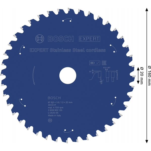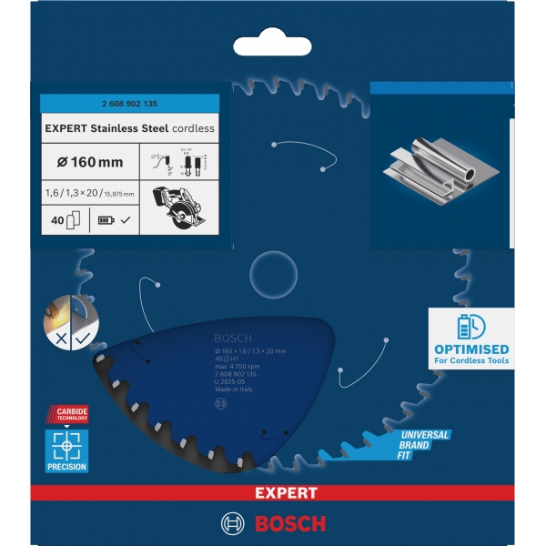 Panza de ferastrau circular EXPERT Stainless Steel cordless, 160 x 1,6/1,3 x 20 mm, T40