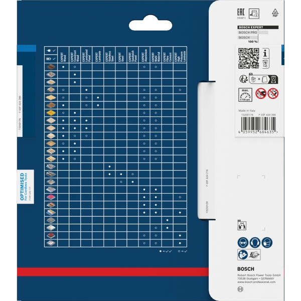 EXPERT Stainless Steel cordless are dinti fini si ascutiti din carburi, realizati folosind tehnologia cu carburi Bosch. Acest lucru inseamna ca este durabila si face taieturi curate si precise. I-am adaugat un strat suplimentar pentru a preveni acumularea de caldura si pentru a o proteja de coroziune. Profilul foarte subtire reduce frecarea si reduce consumul de energie al fierastraului circular, permitandu-va sa lucrati mai mult fara a fi nevoie sa reincarcati acumulatorul.