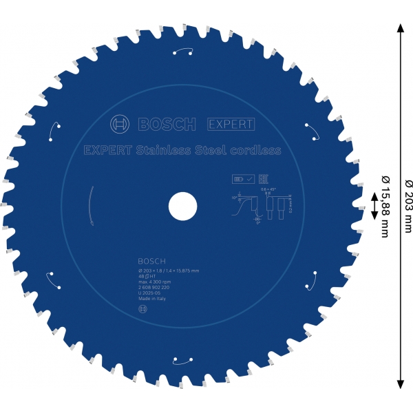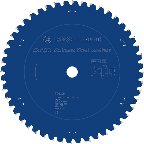 Panza de fierastrau circular EXPERT Stainless Steel cordless, 203 x 1,8/1,4 x 15,875 mm, T48