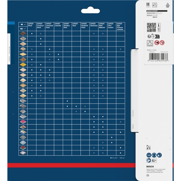 EXPERT Stainless Steel are dinti fini si ascutiti din carburi, realizati folosind tehnologia cu carburi Bosch. Acest lucru inseamna ca este durabila si face taieturi curate si precise. I-am adaugat un strat suplimentar pentru a preveni acumularea de caldura si pentru a o proteja de coroziune.