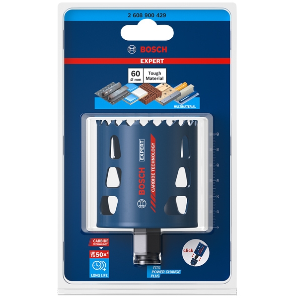 Acest lucru face carota Bosch EXPERT Tough Material ideala pentru lucrari dificile si utilizari diverse: pe langa lemn si metal, este o carota potrivita pentru otel inoxidabil, caramida, placi ceramice moi si materiale plastice ranforsate.