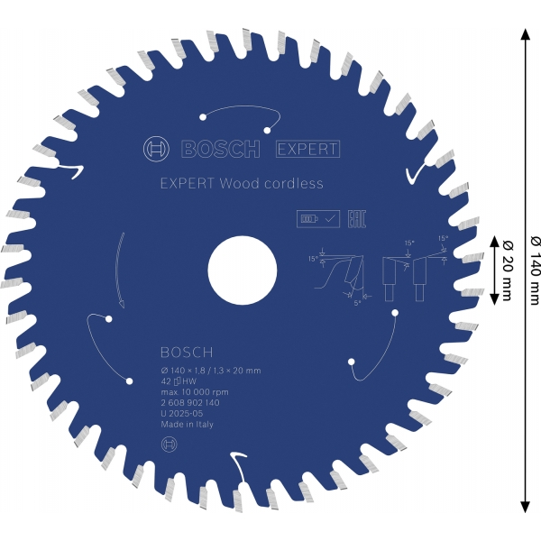 Panza de fierastrau circular EXPERT Wood cordless, 140 x 1,8/1,3 x 20 mm, T42