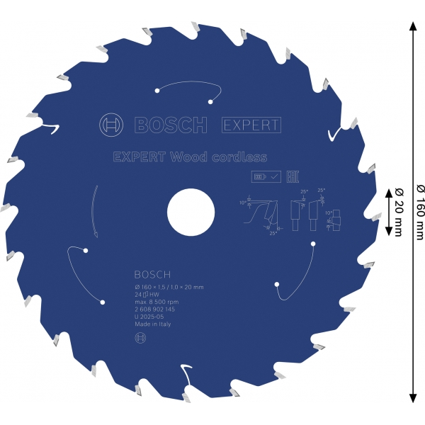 Panza de fierastrau circular EXPERT Wood cordless, 160 x 1,5/1 x 20 mm, T24.