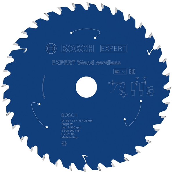EXPERT Wood cordless are dinti fini si ascutiti din carburi, realizati folosind tehnologia cu carburi Bosch. Aceasta inseamna ca executa taieturi curate, precise si ca este mai durabila decat orice alta panza de fierastrau circular pentru lemn din portofoliul nostru. I-am adaugat un strat suplimentar pentru a preveni acumularea de caldura si pentru a o proteja de coroziune. Profilul foarte subtire reduce frecarea si reduce consumul de energie al fierastraului circular, permitandu-va sa lucrati mai mult fara a fi nevoie sa reincarcati acumulatorul.