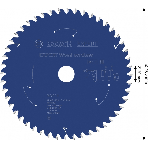 Panza de fierastrau circular EXPERT Wood cordless, 160 x 1,5/1 x 20 mm, T48