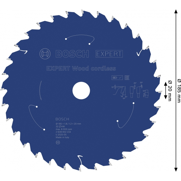 Panza de fierastrau circular EXPERT Wood cordless, 185 x 1,8/1,2 x 20 mm, T32