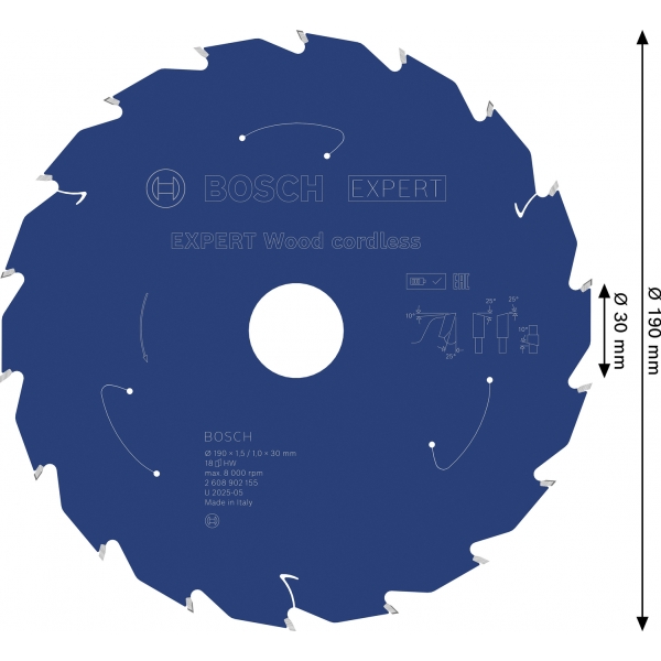 Panza de fierastrau circular EXPERT Wood cordless, 190 x 1,5/1 x 30 mm, T18