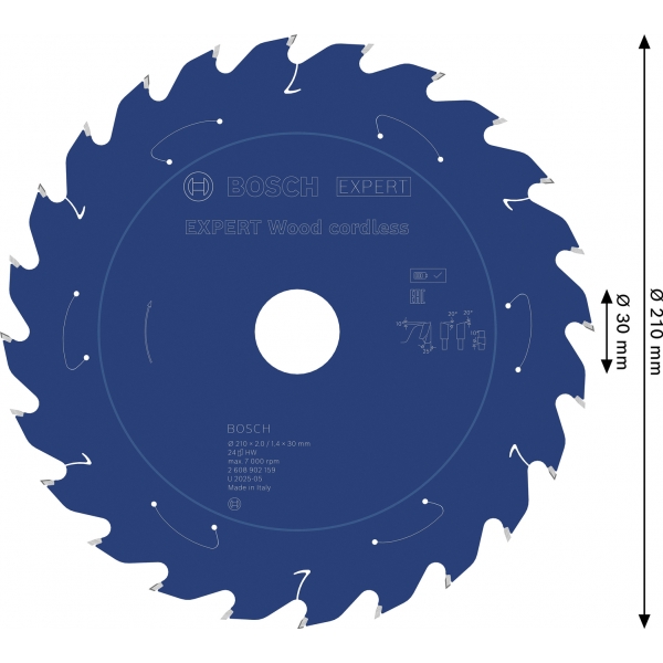 Panza de fierastrau circular EXPERT Wood cordless, 210 x 2/1,4 x 30 mm, T24