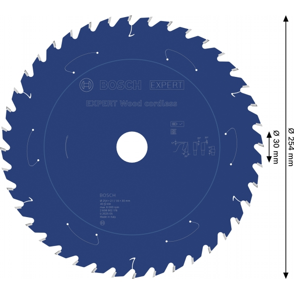 Panza de fierastrau circular EXPERT Wood cordless, 254 x 2,1/1,6 x 30 mm, T40