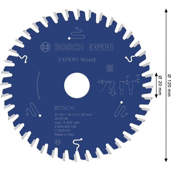 Panza de ferastrau circular EXPERT Wood, 120 x 1,8/1,2 x 20 mm, T40