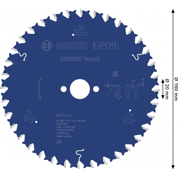 EXPERT Wood are dinti fini si ascutiti din carburi, realizati folosind tehnologia cu carburi Bosch. Aceasta inseamna ca face taieturi curate, precise si ca este mai durabila decat orice alta panza de fierastrau circular pentru lemn pe care o avem in portofoliul nostru. I-am adaugat un strat suplimentar pentru a preveni acumularea de caldura si pentru a o proteja de coroziune.