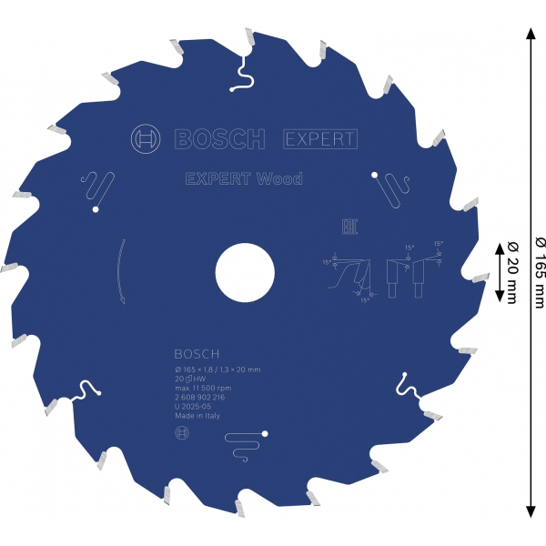 Panza de fierastrau circular EXPERT Wood, 165 x 1,8/1,3 x 20 mm, T20