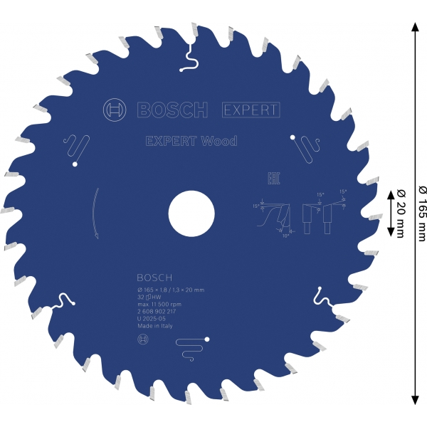 Panza de fierastrau circular EXPERT Wood, 165 x 1,8/1,3 x 20 mm, T32