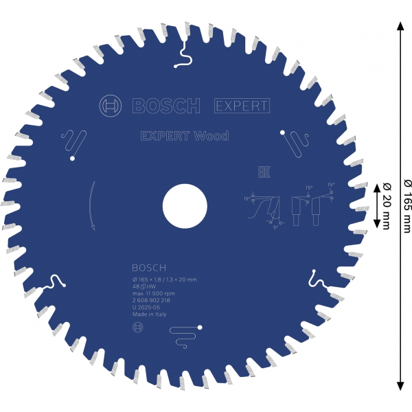 Panza de fierastrau circular EXPERT Wood, 165 x 1,8/1,3 x 20 mm, T48