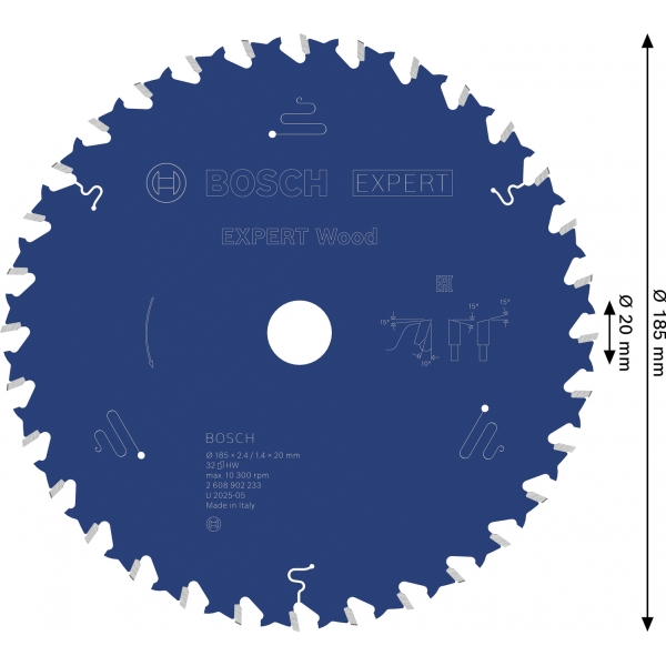 Panza de fierastrau circular EXPERT Wood, 185 x 2,4/1,4 x 20 mm, T32