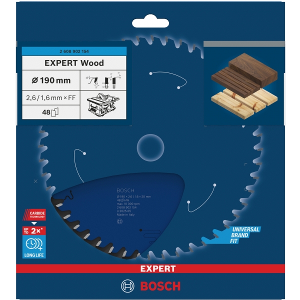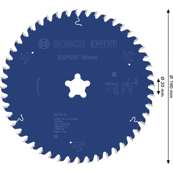 Panza de fierastrau circular EXPERT Wood, 190 x 2,6/1,6 x 30 mm, T48