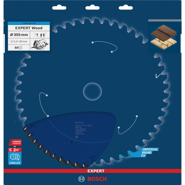 EXPERT Wood are dinti fini si ascutiti din carburi, realizati folosind tehnologia cu carburi Bosch. Aceasta inseamna ca face taieturi curate, precise si ca este mai durabila decat orice alta panza de fierastrau circular pentru lemn pe care o avem in portofoliul nostru. I-am adaugat un strat suplimentar pentru a preveni acumularea de caldura si pentru a o proteja de coroziune.