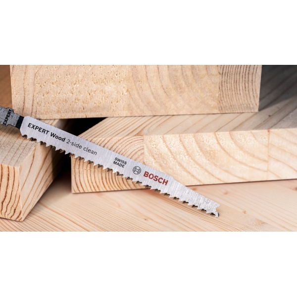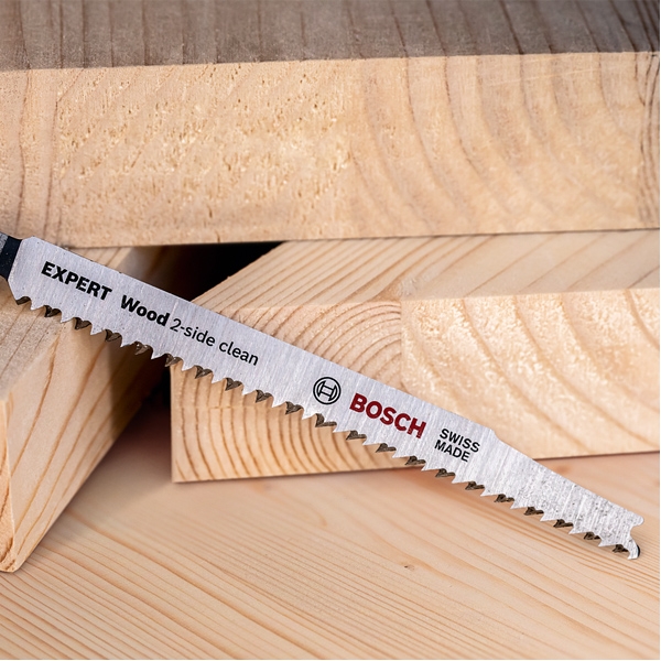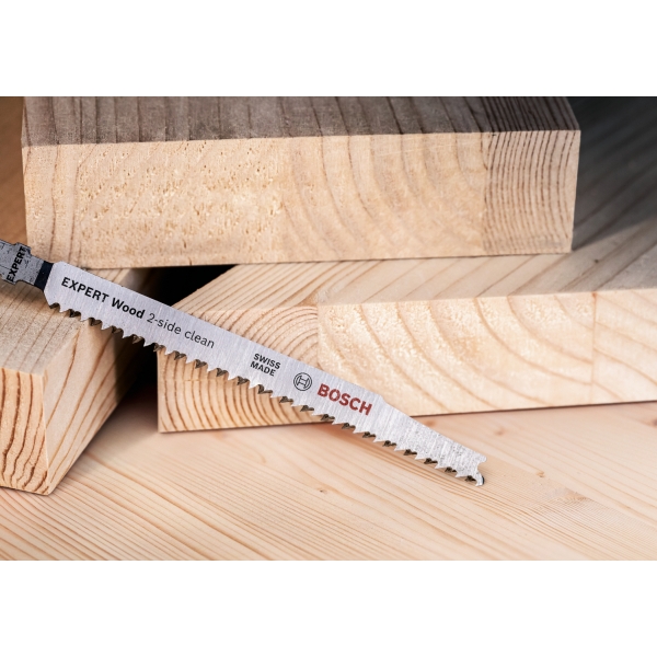 A face ca "partea curata" a unei taieturi de ferastrau vertical se afla pe partea vizibila a materialului de lucru a fost intotdeauna o arta in randul montatorilor si tamplarilor. Uneori, puteti intoarce piesa de prelucrat, alteori, ferastraul vertical in sine poate fi tinut invers. Sau poti folosi panza de fierastrau EXPERT Wood 2-side clean, care asigura o taiere fara rupere, perfecta, pe ambele parti, datorita randurilor duble de dinti.