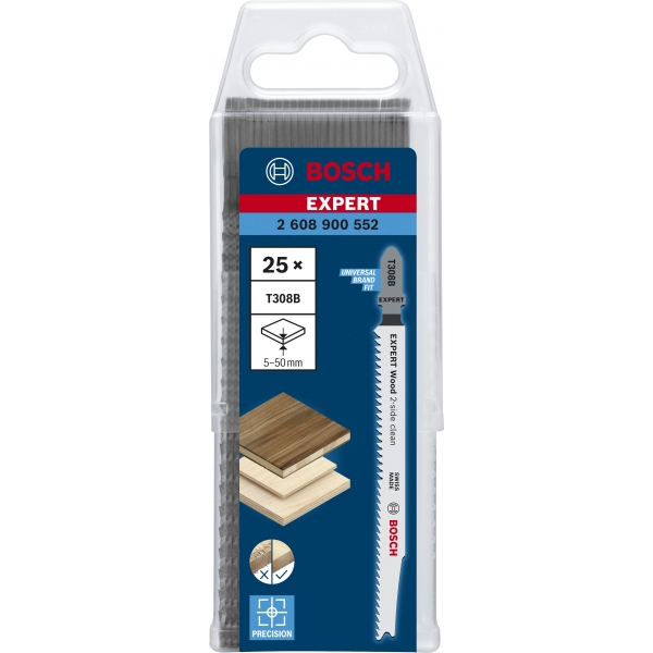 Cu dintii sai extra ascutiti, slefuiti cu precizie, panza de fierastrau vertical Bosch EXPERT Wood 2-side clean este potrivita pentru taierea lemnului de esenta moale cu o grosime de pana la 50 mm. Producatorii de dulapuri pot obtine un finisaj perfect si fara a pierde timp slefuind dupa fiecare taiere cu ferastraul vertical. Disponibila in versiunea pentru taieri drepte (T308B), pentru taieri curbe (T308BO) si pentru taieri precise in unghi (T308BP).