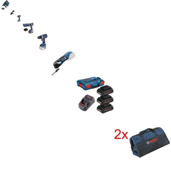| Set de livrare | 1 x Bosch - GBH 18V-26 F - Rotopercutor SDS-Plus fara acumulatori si incarcator, Li-Ion, 18 V, - Ah, 2.6 J, mandrina interschimbabila, motor fara perii, sistem antivibratii, turatie constanta, led iluminare, turatie reglabila Laveta pentru masina Limitator de reglare a adancimii 210 mm Mandrina interschimbabila SDS-plus Mandrina rapida interschimbabila Maner suplimentar Acumulatorii si incarcatorul nu sunt inclusi in setul de livrare 1 x Bosch - GWS 18V-10 C - Polizor unghiular fara acumulatori si incarcator, Li-Ion, 18 V, - Ah, 125 mm, motor fara perii, piulita rapida, aparatoare rapida, protectie repornire Aparatoare de protectie Flansa de prindere Maner suplimentar cu amortizor de vibratii Vibration Control Piulita cu fixare rapida 1 x Bosch - GDX 18V-200 C - Masina de insurubat cu impact fara acumulatori si incarcator, Li-Ion, 18 V, - Ah, 200 Nm, M4-M14, motor fara perii Acumulatorii si incarcatorul nu sunt inclusi in setul de livrare! 1 x Bosch - GDR 18V-200 C - Masina de insurubat cu impact cu 2 acumulatori, Li-Ion, 18 V, 5 Ah, 200 Nm, M4-M14, motor fara perii, turatie reglabila, valiza speciala 2 acumulatori, Li-Ion, 18 V, 5 Ah Incarcator rapid GAL 1880 CV 1/2 insertie L-BOXX accesorii 1/2 insertie L-BOXX pentru scula si incarcator Valiza de transport si depozitare L-BOXX 136 1 x Bosch - GSR 18V-60 C - Masina de gaurit si insurubat fara acumulatori si incarcator, Li-Ion, 18 V, - Ah, 60 Nm, motor fara perii, led iluminare 1/2 insertie L-BOXX Acumulatorii si incarcatorul nu sunt inclusi in setul de livrare! 1 x Bosch - GOP 18V-28 - Multicutter fara acumulatori si incarcator, Li-Ion, 18 V, - Ah, motor fara perii, prindere rapida accesorii, led iluminare 1 panza de fierastrau de taiere in adancime StarlockPlus BIM PAIZ 32 APB, Curved-Tec, Wood + Metal 1 x Bosch - 0615990L1R - Set 3 acumulatori si incarcator, Li-Ion, 18 V, 4 Ah, valiza speciala 2 x Bosch - 1619BZ0100 - Geanta textila, 480x280x300 mm |