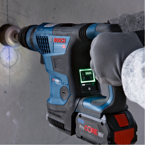 Cel mai inteligent ciocan SDS plus – starea in timp real a sculei electrice prin interfata cu utilizatorul, reglaje individuale prin Bluetooth prin intermediul aplicatiei Bosch Toolbox.