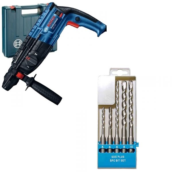 | Set de livrare | 1 x Bosch - GBH 240 - Rotopercutor SDS-Plus, 790 W, 2.7 J, valiza plastic Maner suplimentar Limitator de reglare a adancimii Valiza profesionala 1 x Raider - 158101 - Set burghie, SDS-Plus, 5-10 mm, 5 buc |