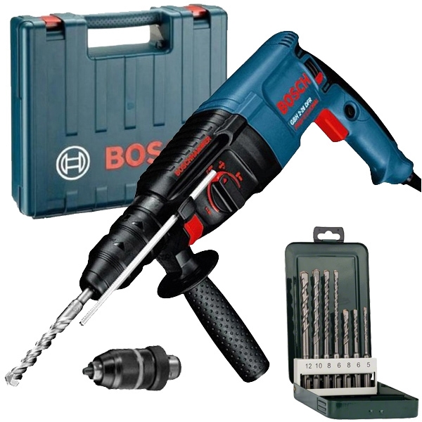 Se livreaza cu mandrina interschimbabila SDS-plus si cu mandrina rapida.