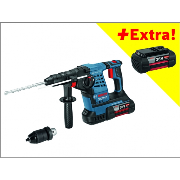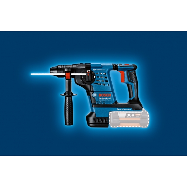 Un avans de lucru cu pana la 50% mai rapid datorita energiei de percutie mai ridicate si duratei de viata mai mari cu 100% (comparativ cu modelul anterior GBH 36 V-LI)