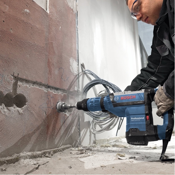 ROTOPERCUTORUL SDS-MAX GBH 8-45 DV este echipat cu un motor performant de 1500 W si dezvolta o forta de impact de 12.5 J, se pot realiza gauri si perforari extrem de rapid, atat in pereti cat si in tavane.