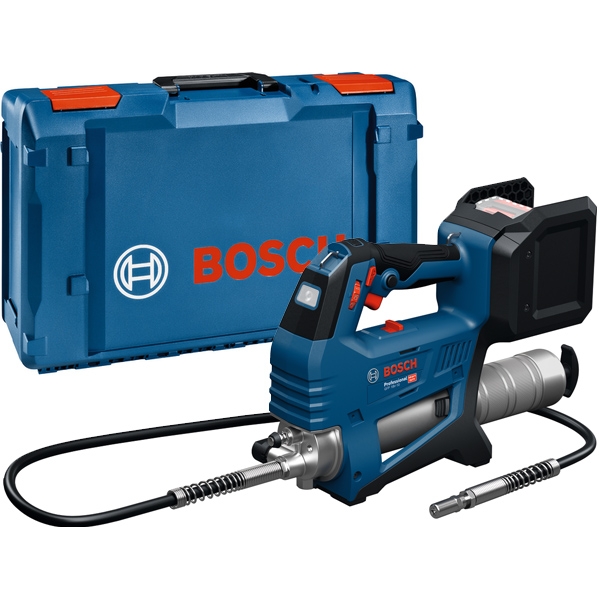 Pistolul de gresat Bosch GFP 18V-10 faciliteaza sarcinile de ungere. Un mod convenabil de pompare iti permite sa definesti numarul exact de pompe, precum si doza specifica de care ai nevoie. Ungerea este realizata rapid, eficient si fara efort datorita celor 2 moduri de viteza, care asigura presiune si debite optime. Cu furtunul lung si cuplajul inclinat, poti unge confortabil fitingurile greu accesibile. In plus, poti utiliza orice tip de cartus - GFP 18V-10 este compatibil cu toate sistemele de cartuse standard.