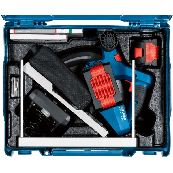 | Set de livrare | 2 acumulatori Li-Ion, 18 V, 8 Ah Incarcator rapida GAL18V-160 C 1 panza fierastrau circular, 140x1.8/1.3x20 mm Cheie hexagonala Sac colector praf Sina de ghidare FSN1600 Valiza de transport si depozitare L-BOXX 238 |