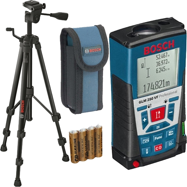 Set de livrare 1 x Bosch - GLM 250 VF - Telemetru laser, 250 m, +/-1 mm/m, 30 valori memorate, pin masurare colturi, luneta vizare integrata