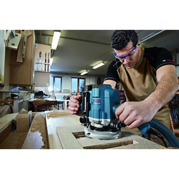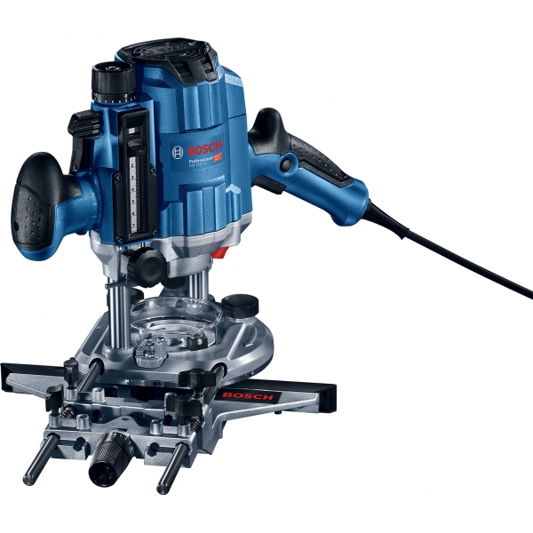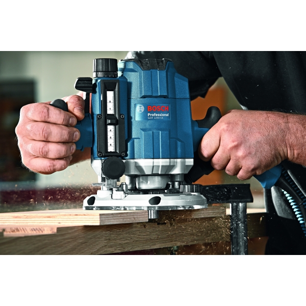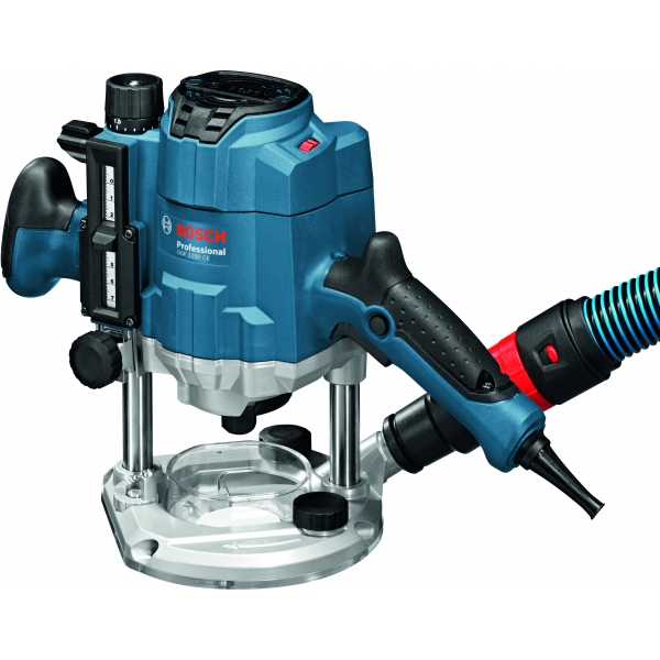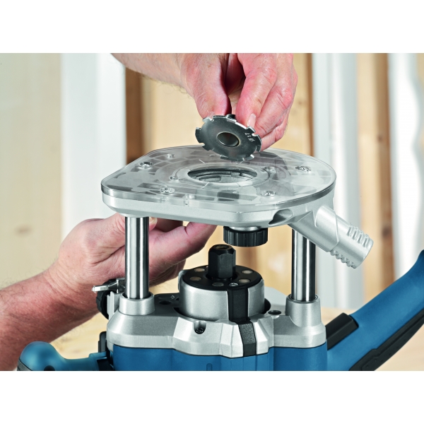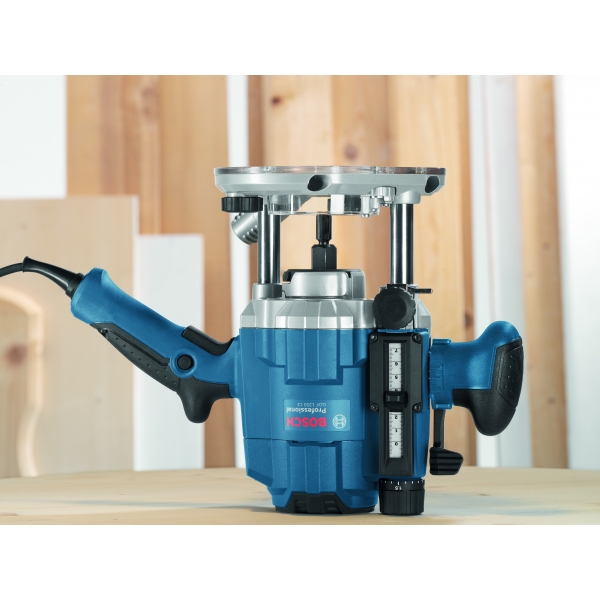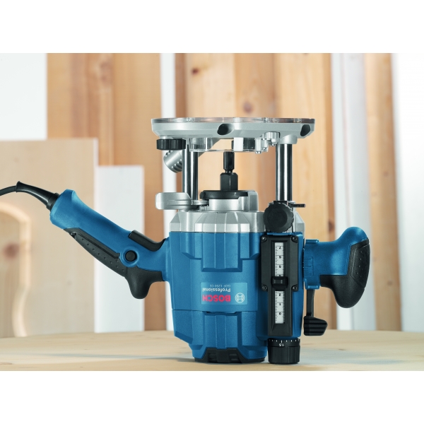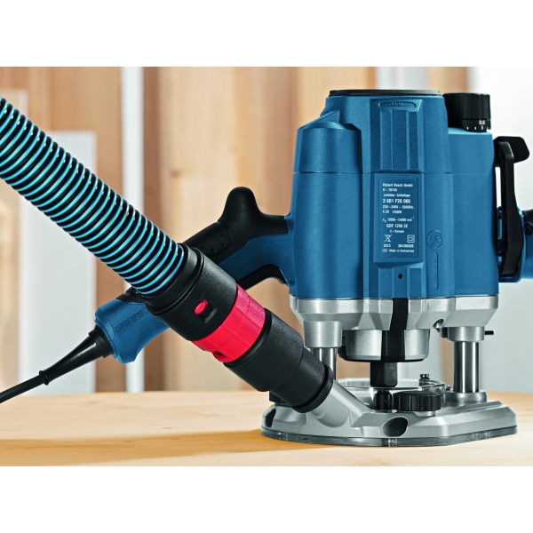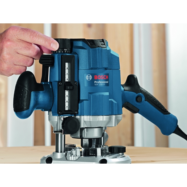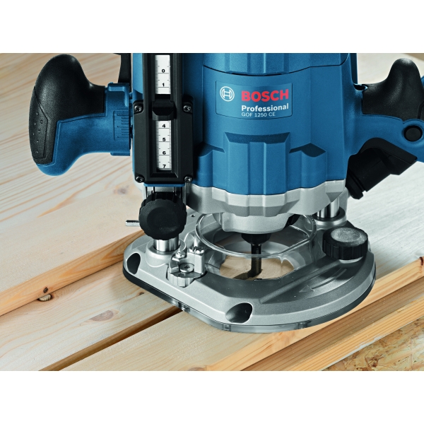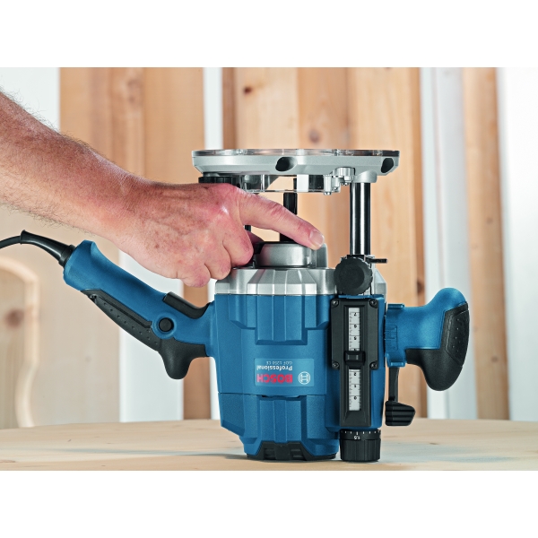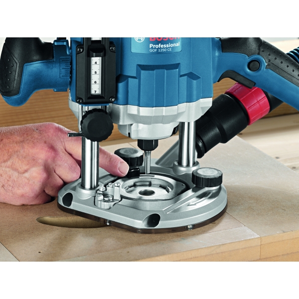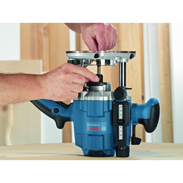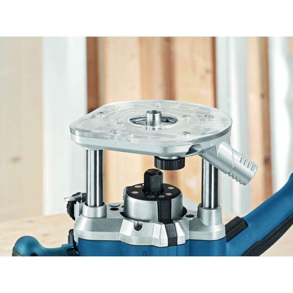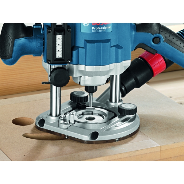 Reglaj fin al adancimii de frezare, patentat de Bosch, in pasi de 1/10 mm in functia de frezare cu avans in adancime