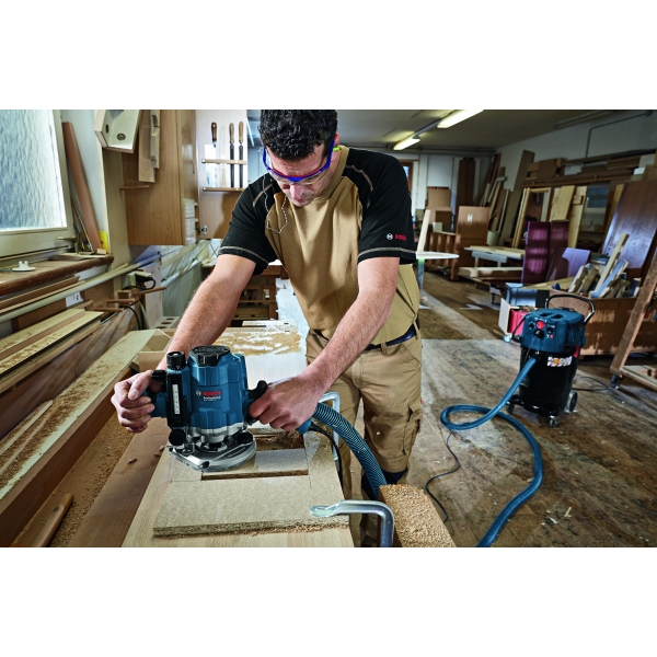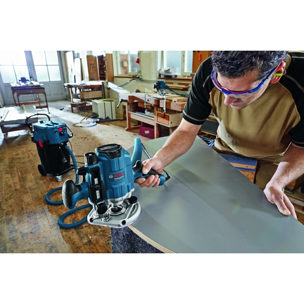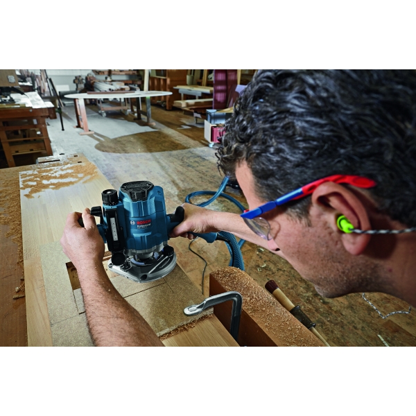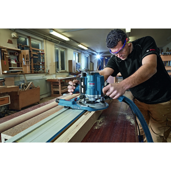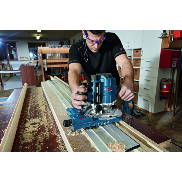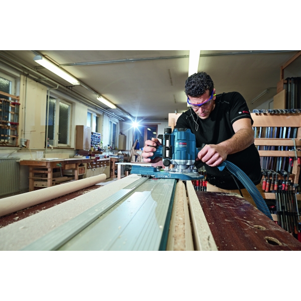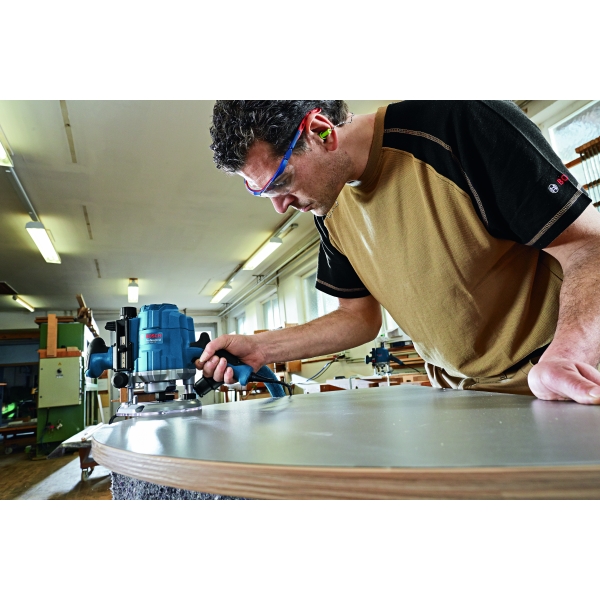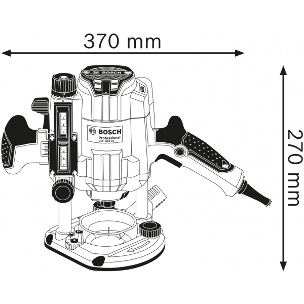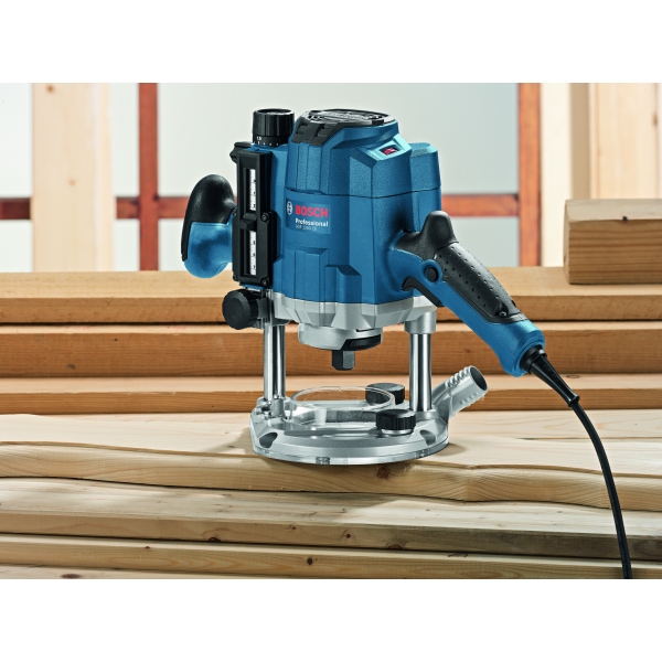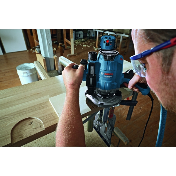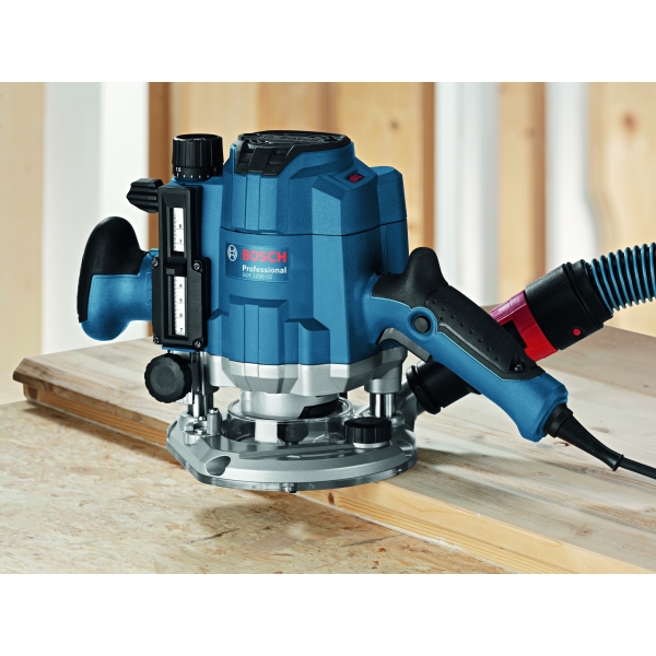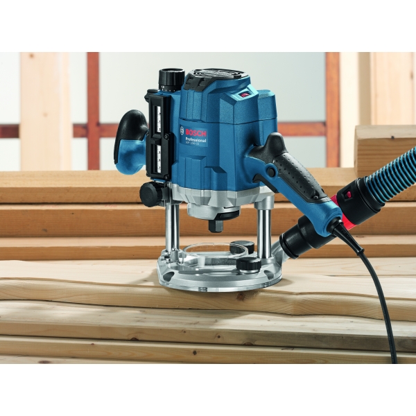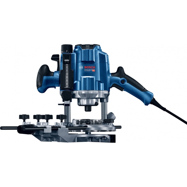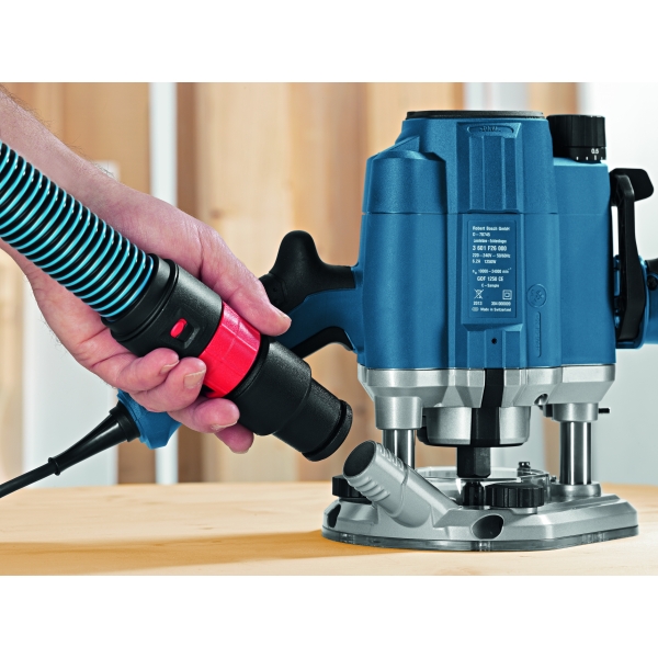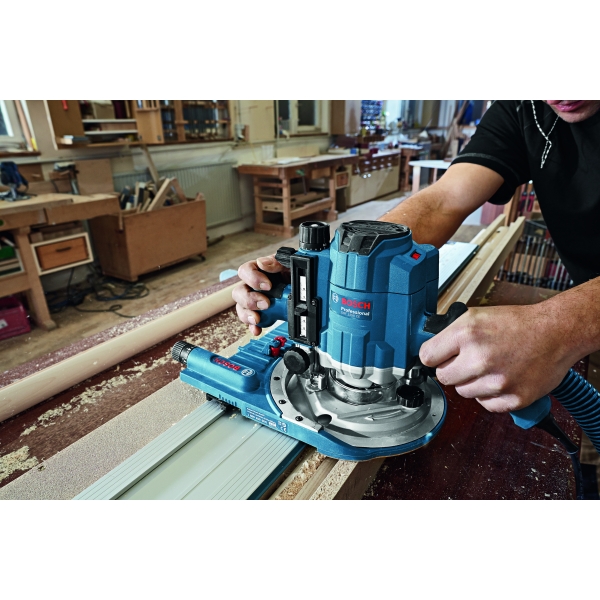Reglaj fin al adancimii de frezare, patentat de Bosch, in pasi de 1/10 mm in functia de frezare cu avans in adancime