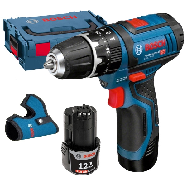 Masina de gaurit si insurubat Bosch - GSB 12V-15 - cu percutie cu acumulatori Li-Ion 12 V si 2 Ah.