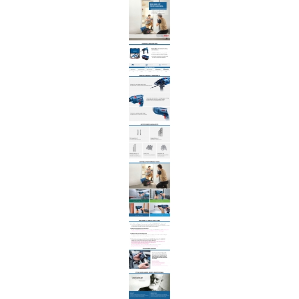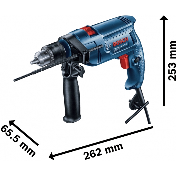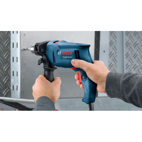 GSB 550 este o masina de gaurit cu cablu care furnizeaza o putere constanta de 550 W, suficienta pentru lucrari medii ca intensitate si dimensiuni.