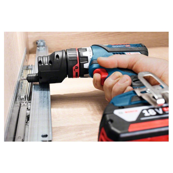 Sistem FlexiClick Bosch: compact si flexibil pentru orice lucrare in clasa de 18 V. Flexibilitate deplina: cu mai multe adaptoare reglabile, sistemul FlexiClick Bosch asigurp solutia optima pentru orice situatie de lucru. Manevrare usoara: adaptoarele Bosch FlexiClick pot fi fixate in 16 pozitii diferite (360 grade), fara a trebui sa fie demontate de pe surubelnita cu acumulator. Versatil: atasamentul unic ciocan rotopercutor transforma masina de gaurit/Insurubat intr-un ciocan rotopercutor veritabil.