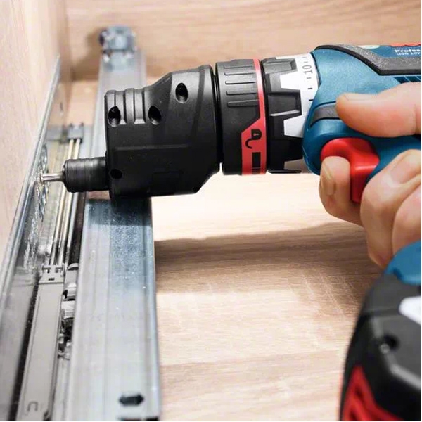 Manevrare usoara: adaptoarele Bosch FlexiClick pot fi fixate in 16 pozitii diferite (360 grade), fara a trebui sa fie demontate de pe surubelnita cu acumulator.