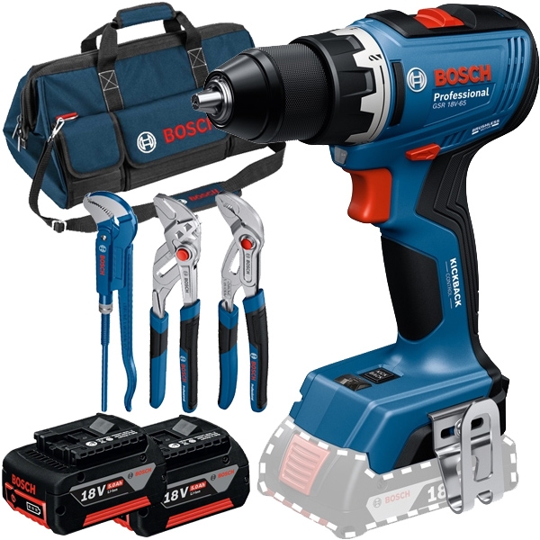 1 x Bosch - GSR 18V-65 - Masina de gaurit si insurubat fara acumulatori si incarcator, Li-Ion, 18 V, - Ah, 65 Nm