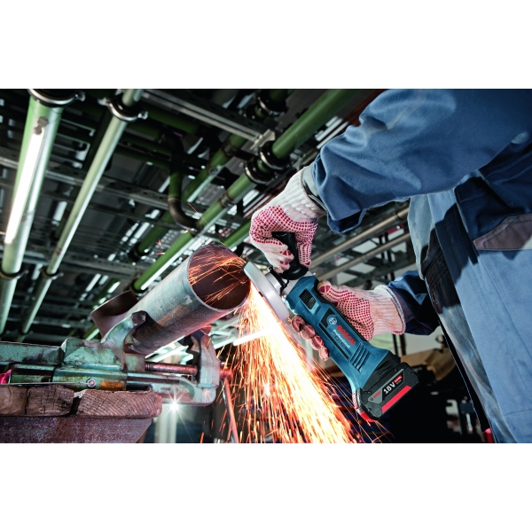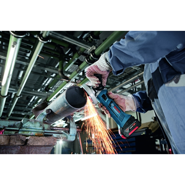 Polizorul unghiular Bosch GWS 18-125 V-LI cu acumulatori inovatori COOLPACK asigura iradierea optima a caldurii, durata lor de viata prelungindu-se astfel cu pana la 100% (comparativ cu acumulatorii litiu-ion fara COOLPACK).