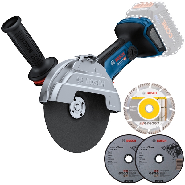 | Set de livrare | 1 x disc diamantat, Standard for Universal, 180x22.23 mm 1 x modul Bluetooth Low Energy GCY 42 Professional 2 x discuri de taiere, Expert for Inox Rapido, 180x22.23 mm Aparatoare Aparatoare din metal cu clema pentru protectie impotriva taierii Maner auxiliar Vibration Control |