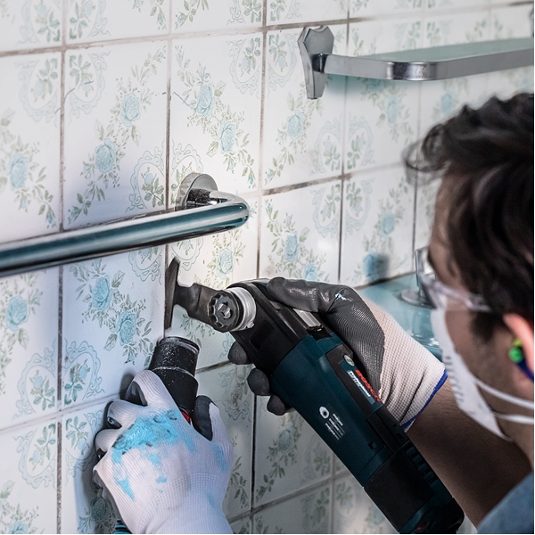 Indepartarea mortarului dintre placi este o munca obisnuita pentru montatorii de bai si bucatarii.