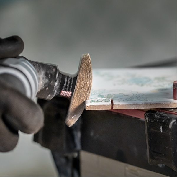 Durata mare de viata si abilitatea remarcabila de taiere sunt asigurate de Diamond Technology de la Bosch: Cu granulatia sa diamantata de inalta calitate, panza EXPERT Corner poate taia chiar si placile ceramice moi.