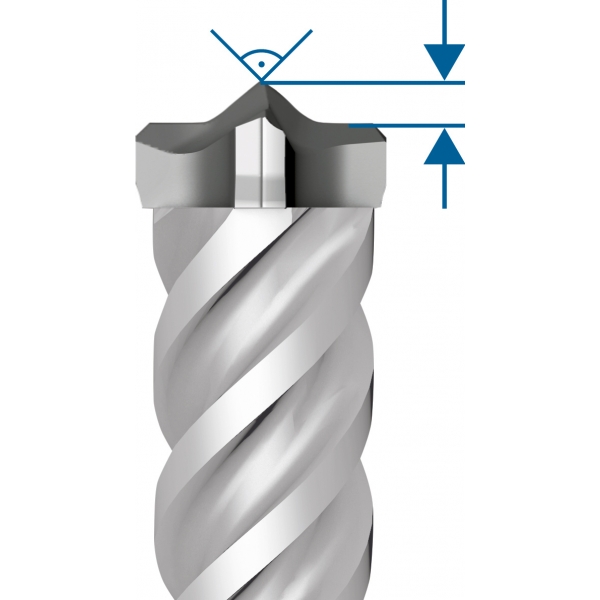 Capul sau cu 4 taisuri, realizat complet din carburi, garanteaza rezistenta si performante exceptionale in beton armat.