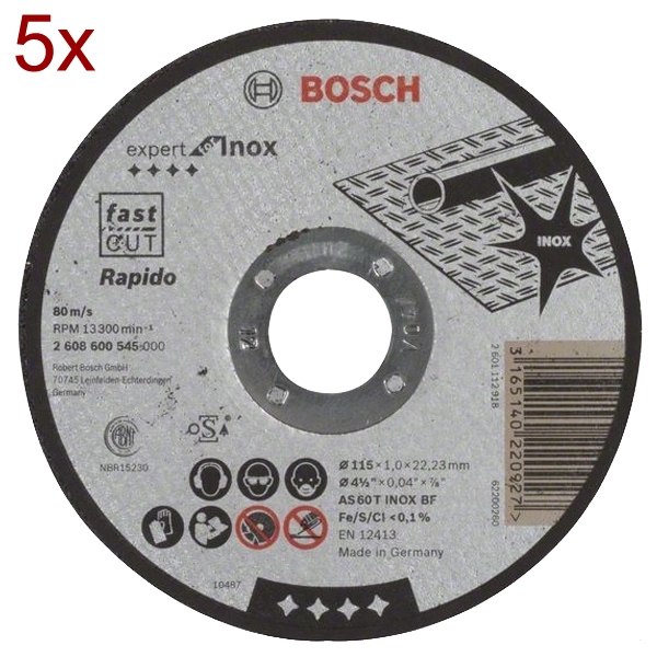 5 x Bosch - Expert for Inox - Rapido - Disc taiere inox, 115x22.2x1 mm: