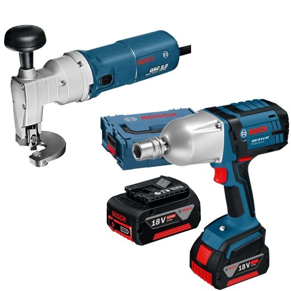 | Set de livrare | 1 x Bosch - GDS 18 V-LI HT - Masina de insurubat cu impact cu 2 acumulatori, Li-Ion, 18 V, 5 Ah, 650 Nm, M12-M20, valiza speciala 2 x acumulatori, Li-Ion, 18 V, 5 Ah Incarcator rapid GAL 1880 CV 1/1 insertie L-BOXX scula electrica si incarcator Valiza de transport si depozitare L-BOXX 136 1 x Bosch - GSC 2.8 - Masina de taiat tabla, 500 W, 2.8 mm Cutit Indicator de aliniere Cheie imbus SW 2.5 Cheie imbus SW 5 |