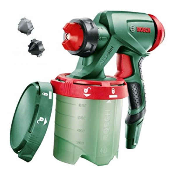 Cu pistolul de pulverizare fina PFS, datorita tehnologiei ALLPaint, puteti pulveriza usor toate tipurile de vopsea: vopsele pentru perete, lacuri si lazuri (inclusiv 3 duze)