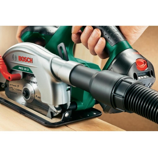 Adaptor pentru aspirator, montat direct pe fierastrau, pentru un loc de munca curat
