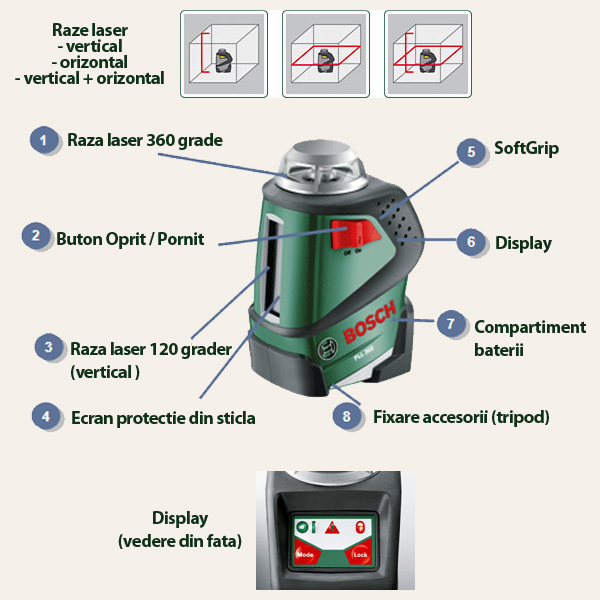 Nivelarea peretilor nu a fost niciodata mai usoara pentru ca datorita tehnologiei inovative puteti proiecta o linie orizontala de 360 de grade, pe toti cei 4 pereti ai unei camere, doar prin simpla apasare a unui buton.